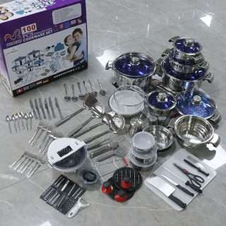 Popular Item Cooking Pot with Kitchen Utensil Set Flatware Set Stainless Steel 100pcs Cookware Set