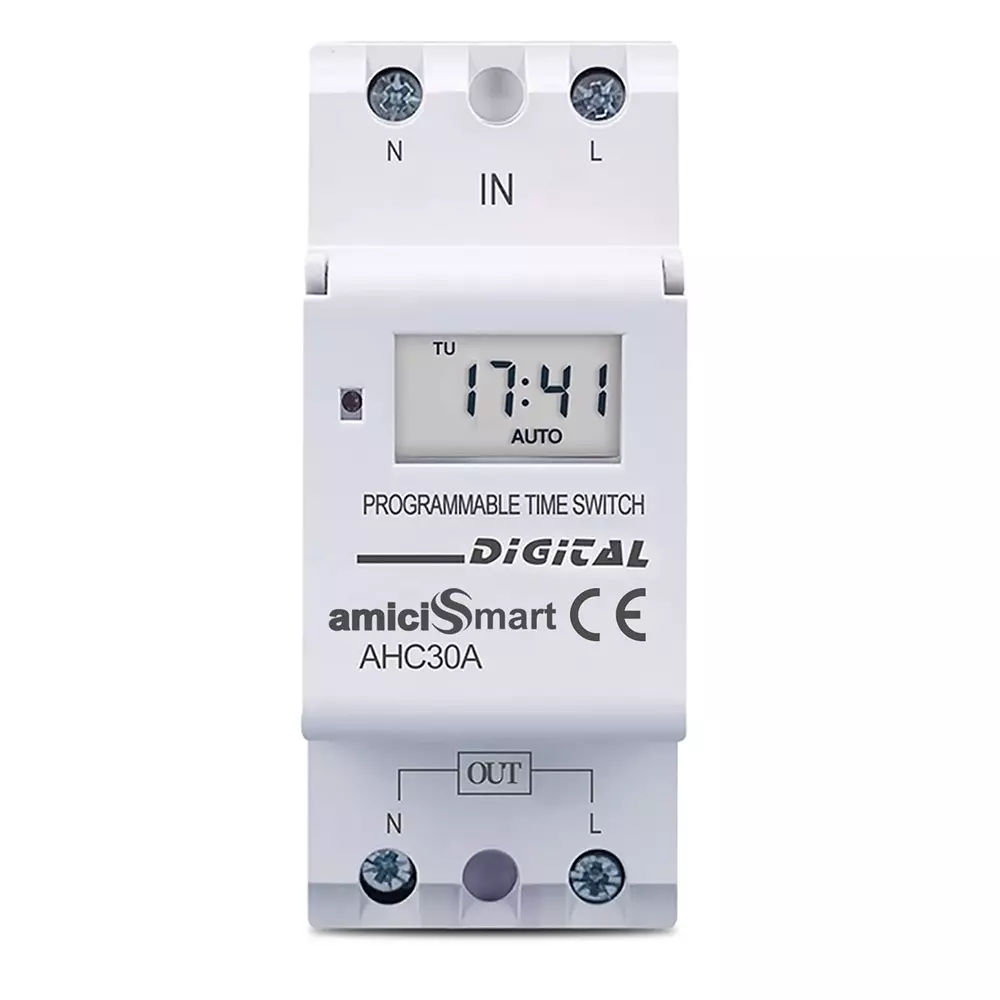 amiciSmart Digital Programmable Timer Switch Relay in-Built 7 Days Schedule, DIN Rail Mounted, 220V, 30A