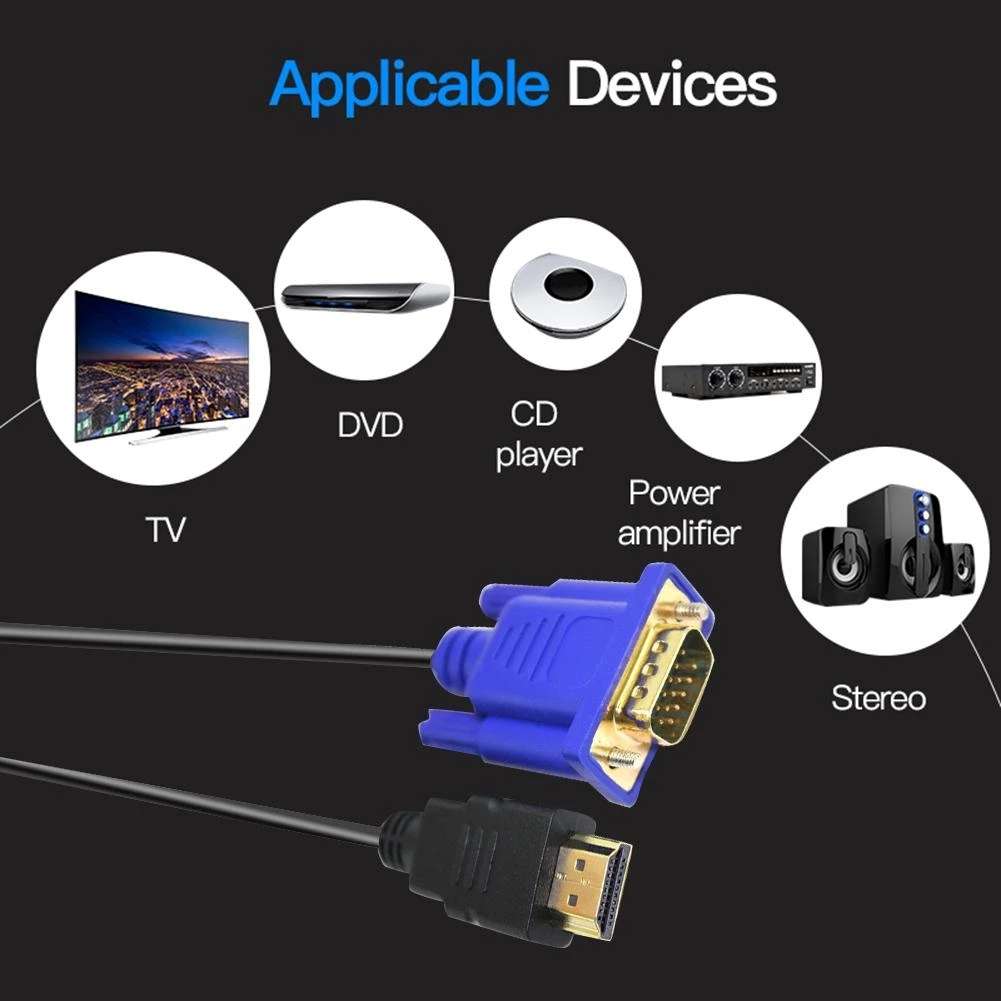 1.8m HDMI-compatible to 15Pin VGA Cable 1080P Video Adapter Male to Male Cord for HDTV Projector Display