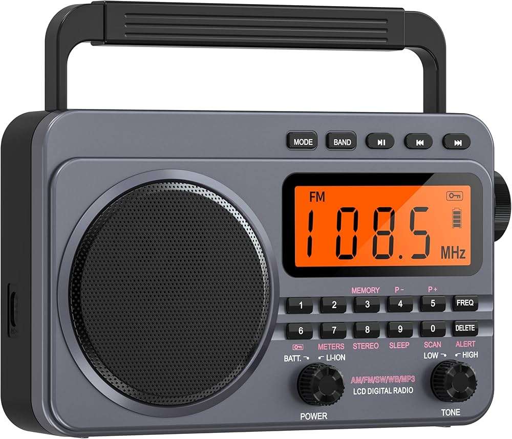 Digital AM FM Shortwave Radio with Best Reception, Rechargeable 4000mAh Portable Radio with NOAA Weather Alert, Large Speaker, Digital Tuner and Stereo Headphones, Compatible( Black Cool)