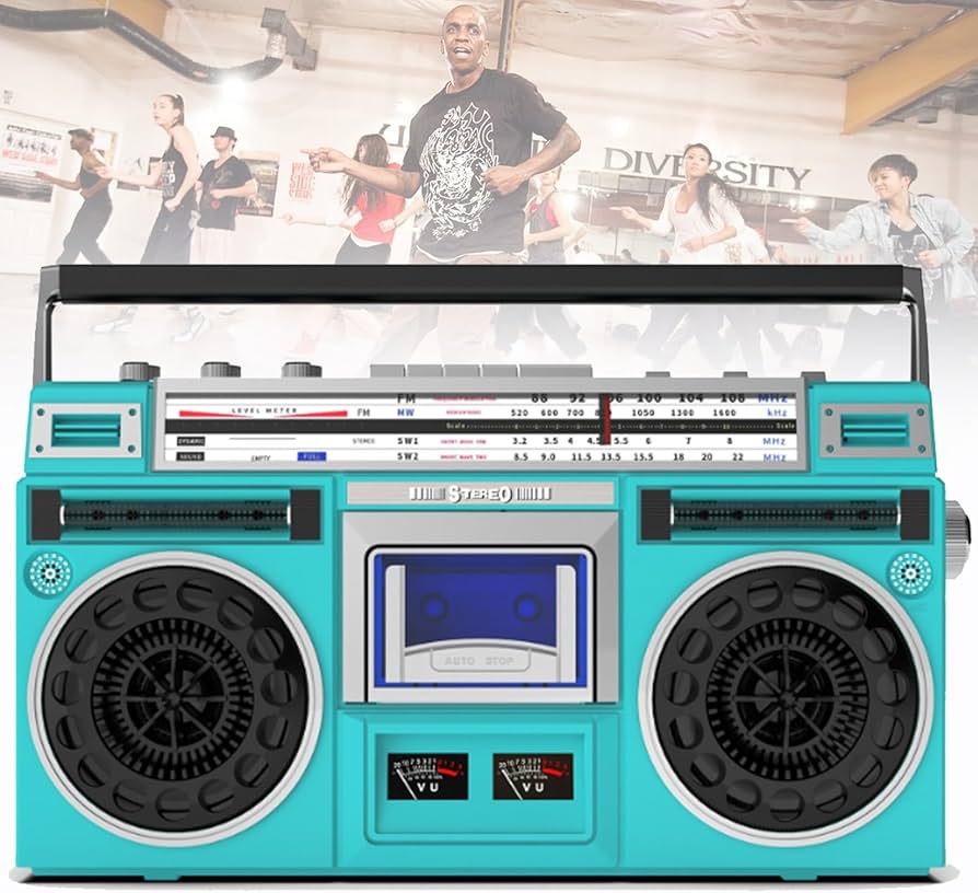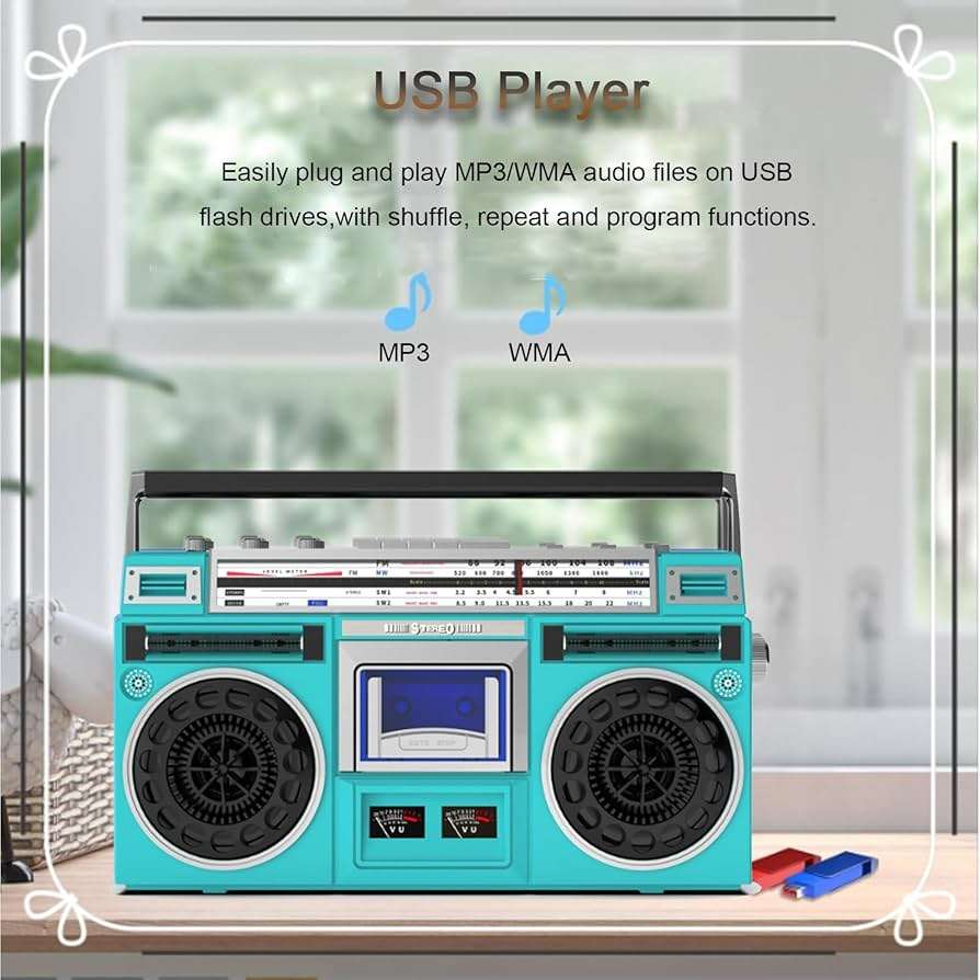 Retro Boombox CD Tape Player, Classic 80s Style, Portable Cassette Boombox, Support SD/USB Input, with AM/FM Radio, Cassette Recorder for Family Gathering Travel(Green Color)