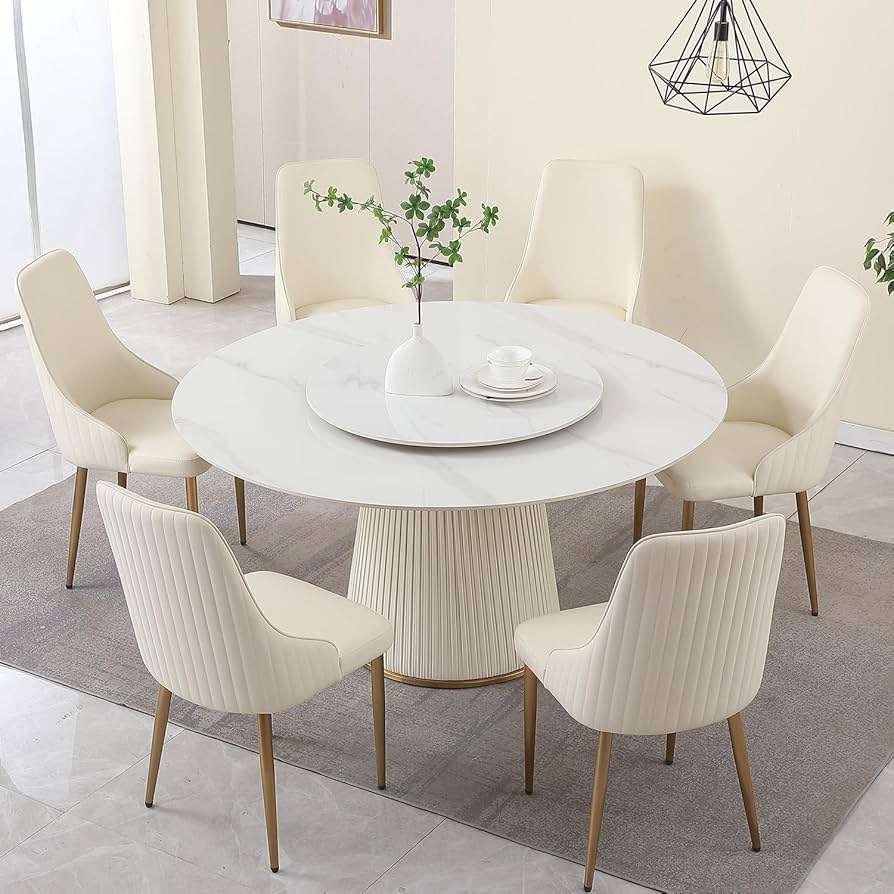 7-Piece Dining Table Set, 59″ Lazy Susan Round Dining Room Table Set of 6, Modern Sintered Stone Tabletop with Removable Turntable, Marble Dining Table with 6 Chairs SetSusan 6Chairs and 1 Table