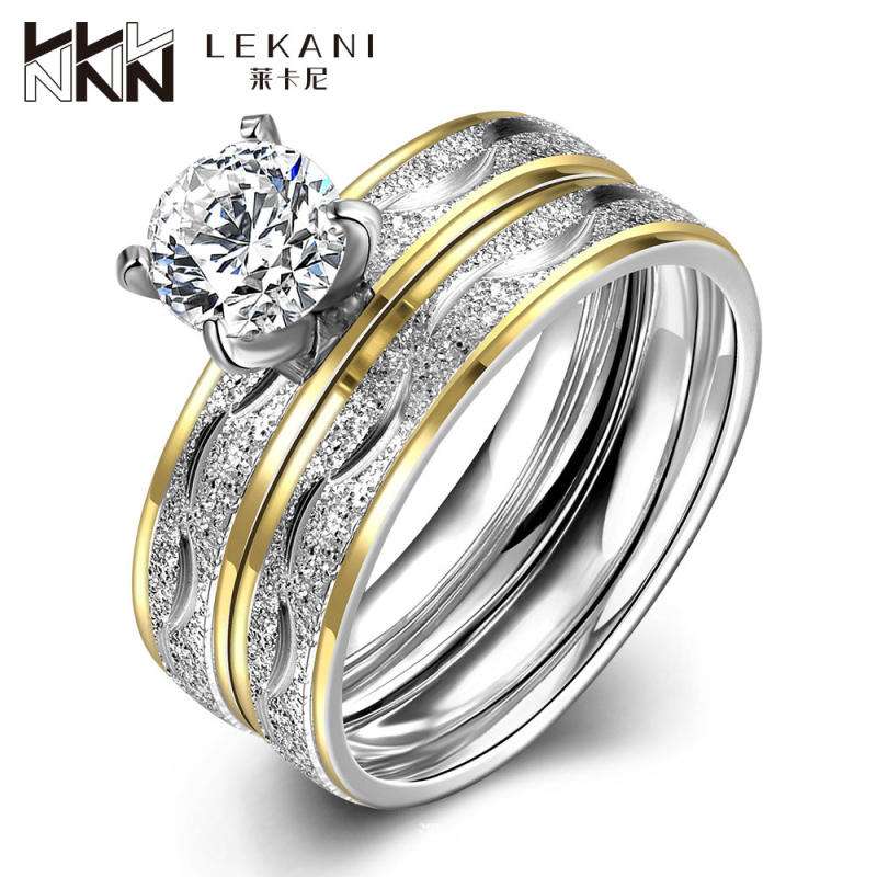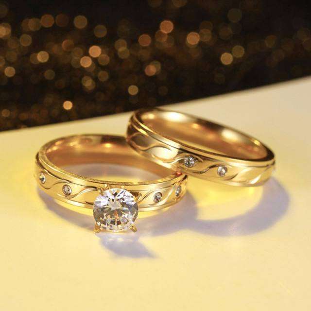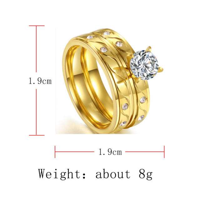 Designer Classic Round Stainless steel Engagement Rings Sets For Women Titanium steel Crystal Gold Wedding Ring