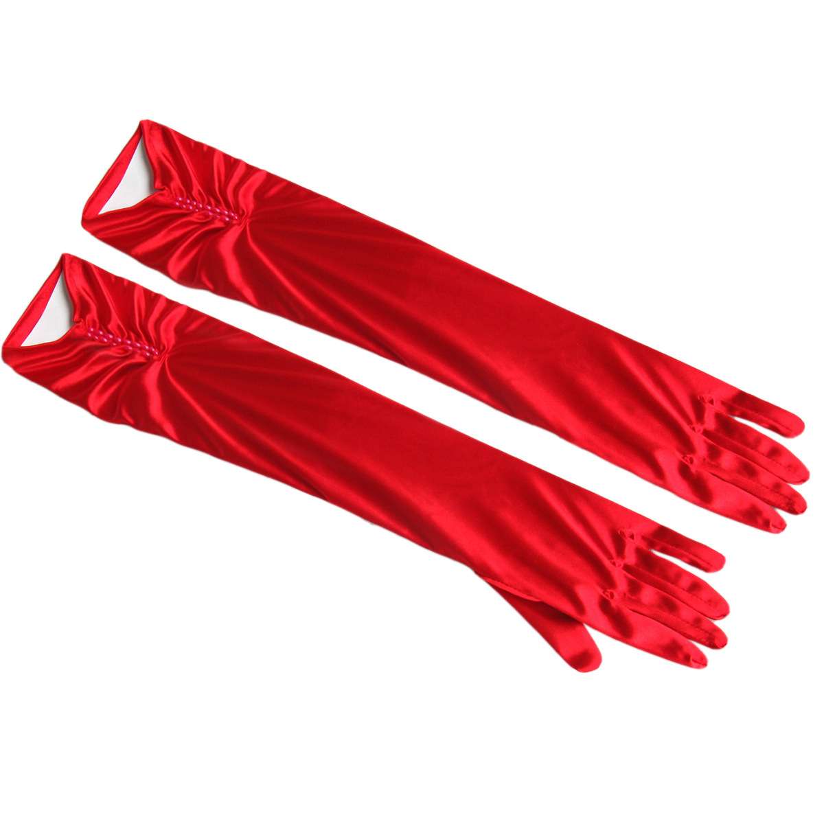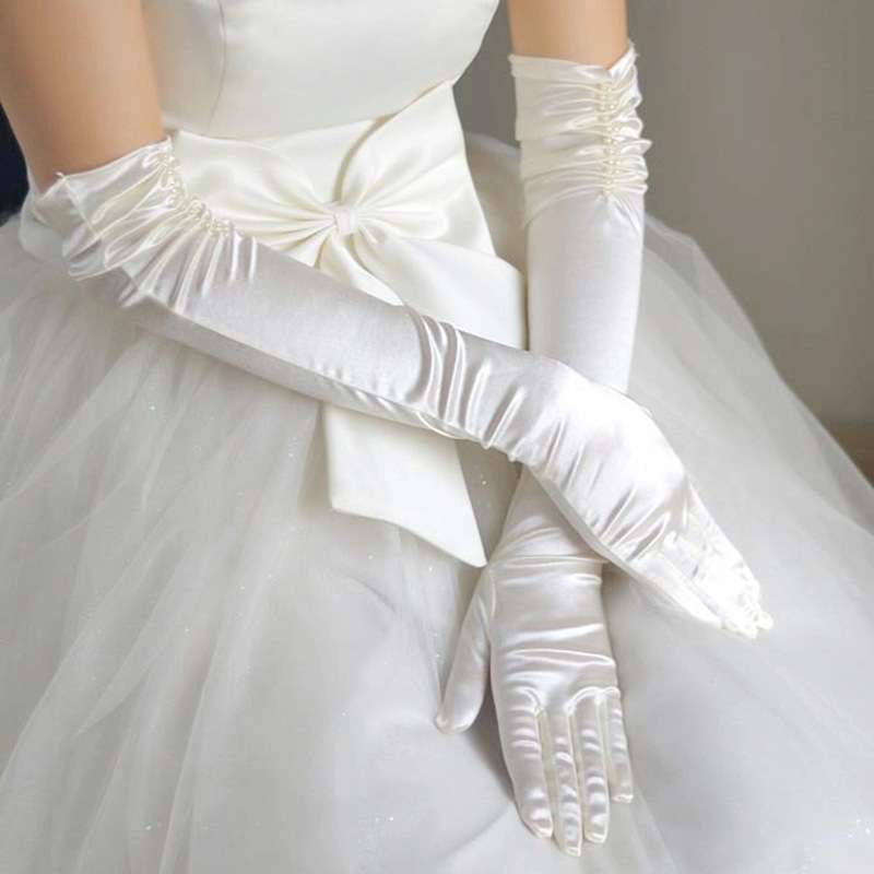 Bride’s Wedding Dress Gloves Extended Elbow Gloves Double Row Sewing Bead Satin Sun Protection and Scar Covering Sleeve Gloves