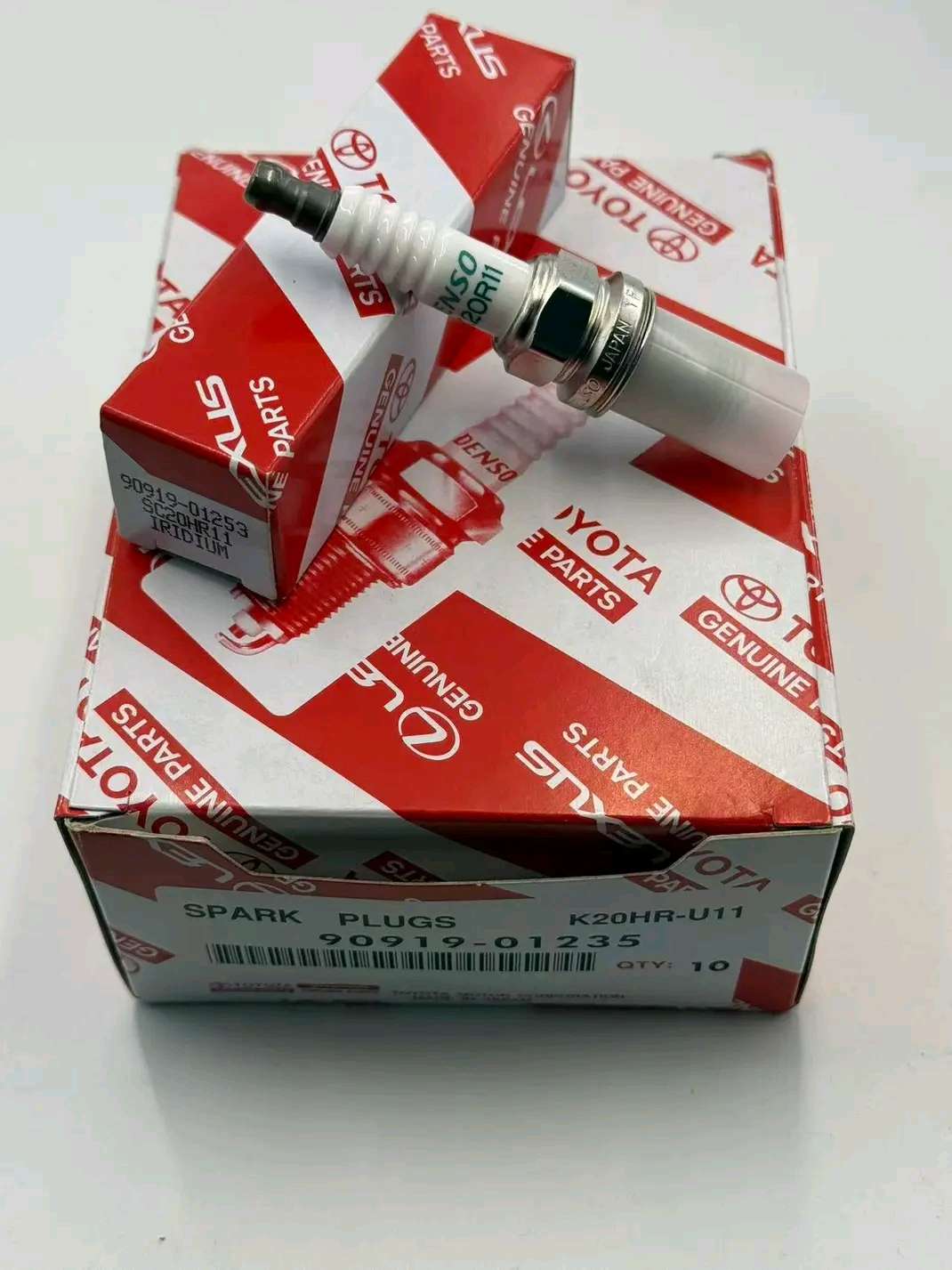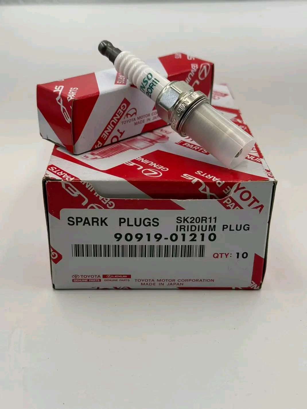 10 PCs Genuine Toyota Iridium Spark Plugs, part number 90919-01210 and Denso part number SK20R11.